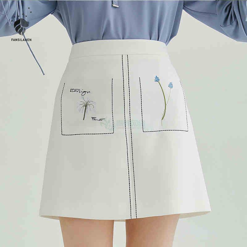 产品名称 : 范思蓝恩刺绣A字裙子女2018春装新款高腰半身裙韩版白色印花短裙
