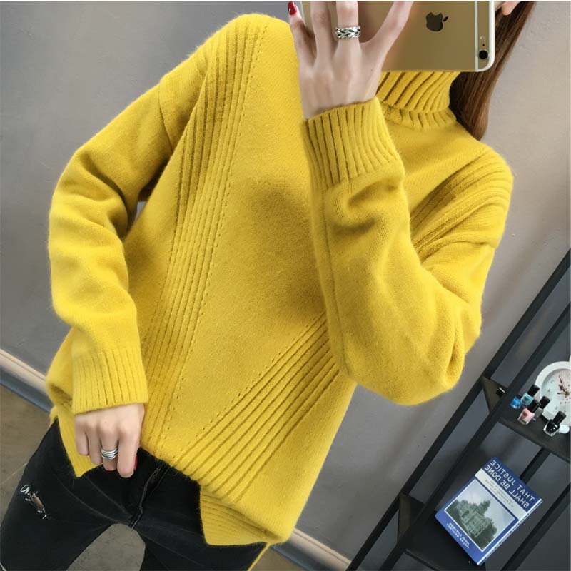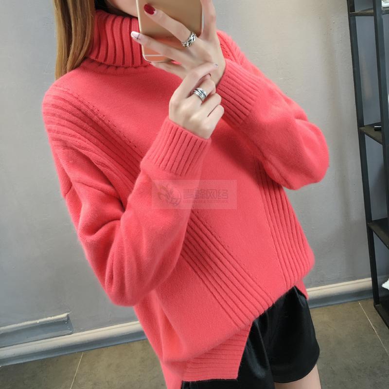 秋冬新款宽松高领套头毛衣女中长款韩版打底针织衫加厚女装学生潮