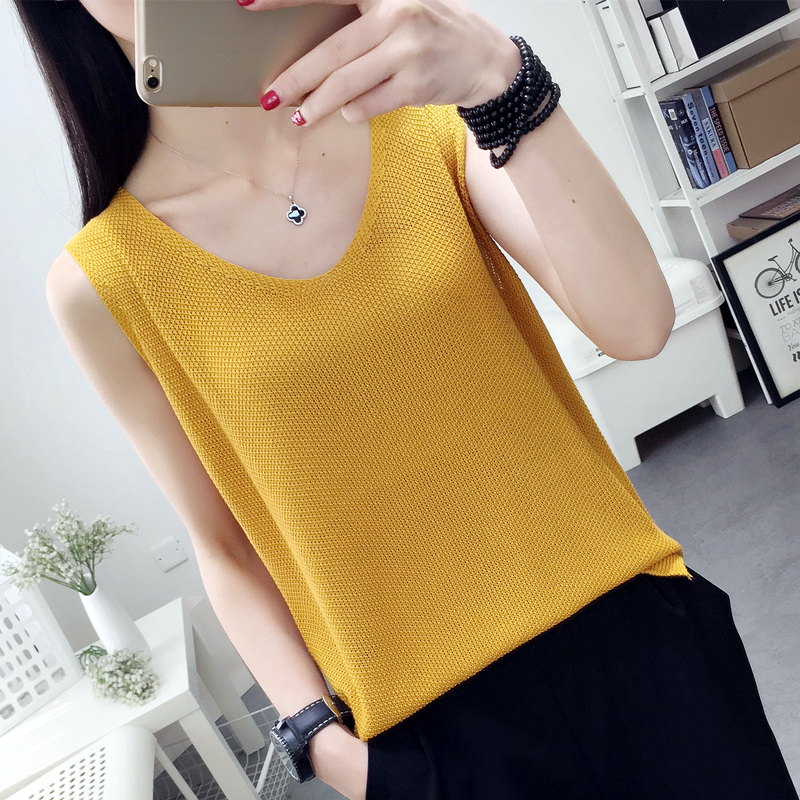 黑白色外穿针织背心女内搭春夏新款宽松棉麻小吊带打底衫无袖上衣