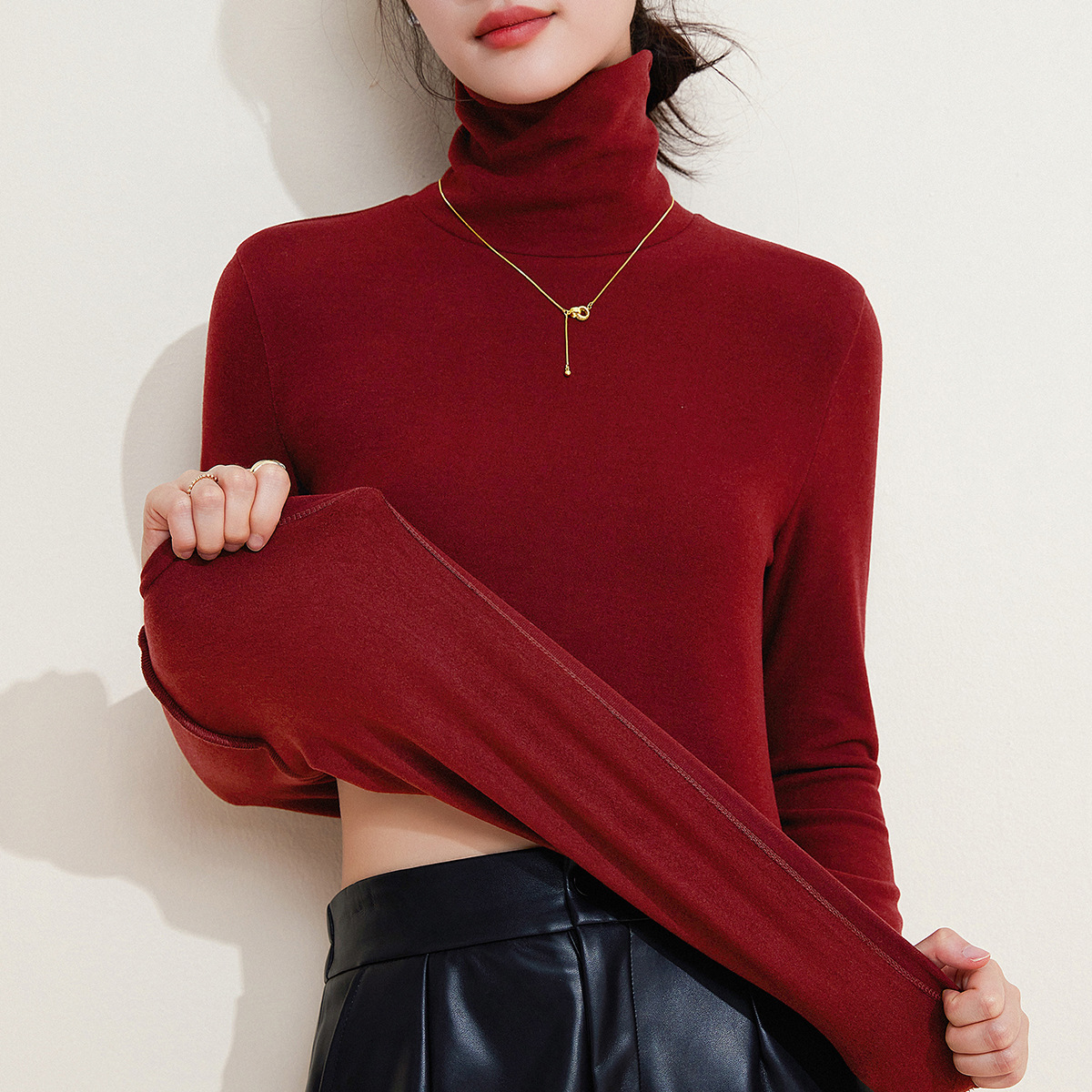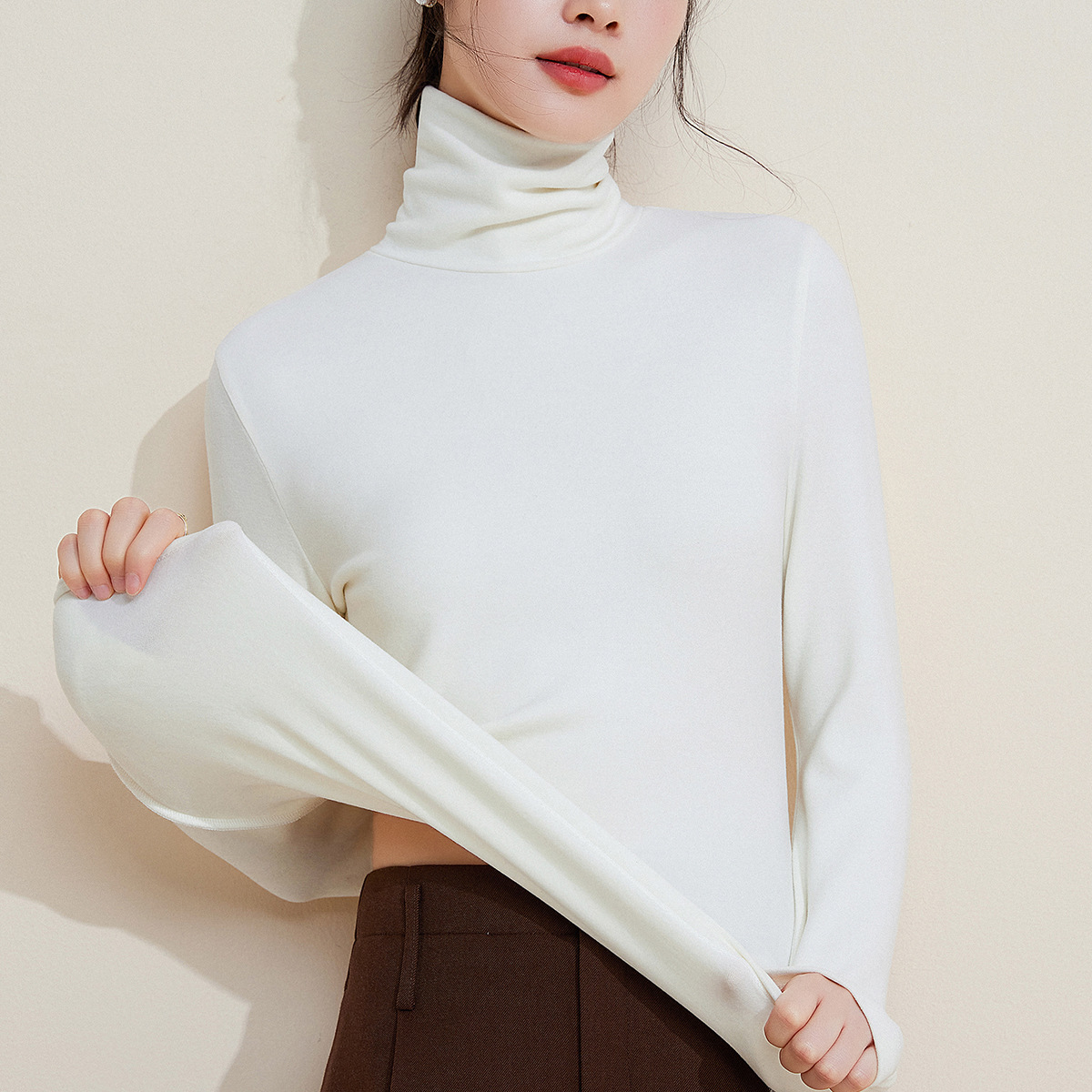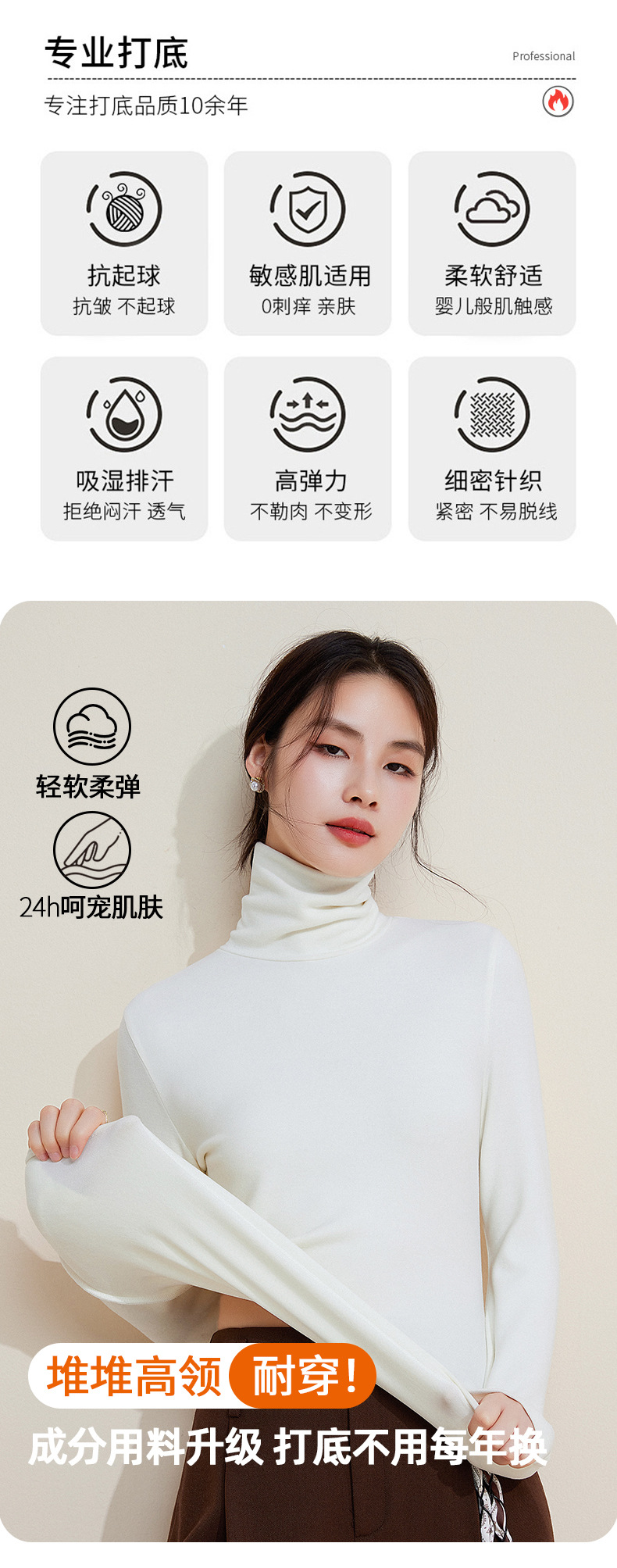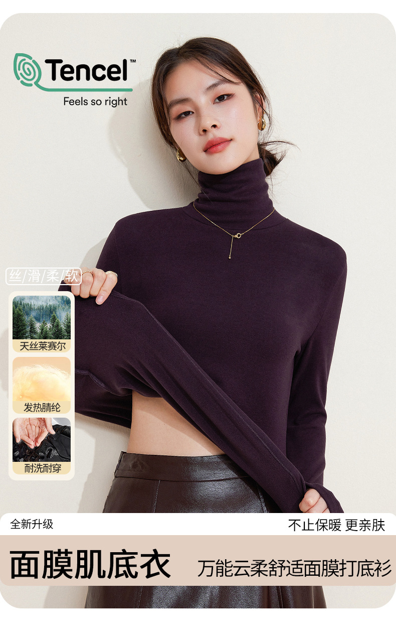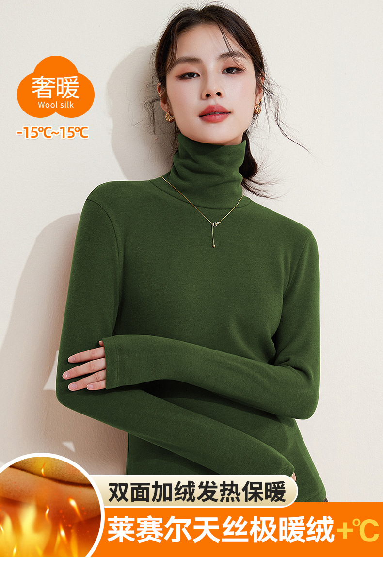 赛尔天丝极暖绒堆堆领打底衫女内搭秋冬新修身保暖加绒上衣秋衣