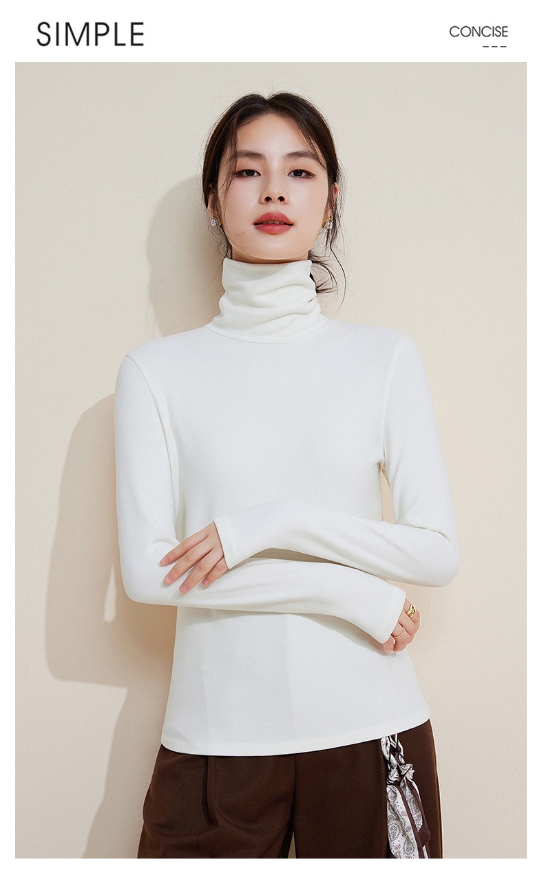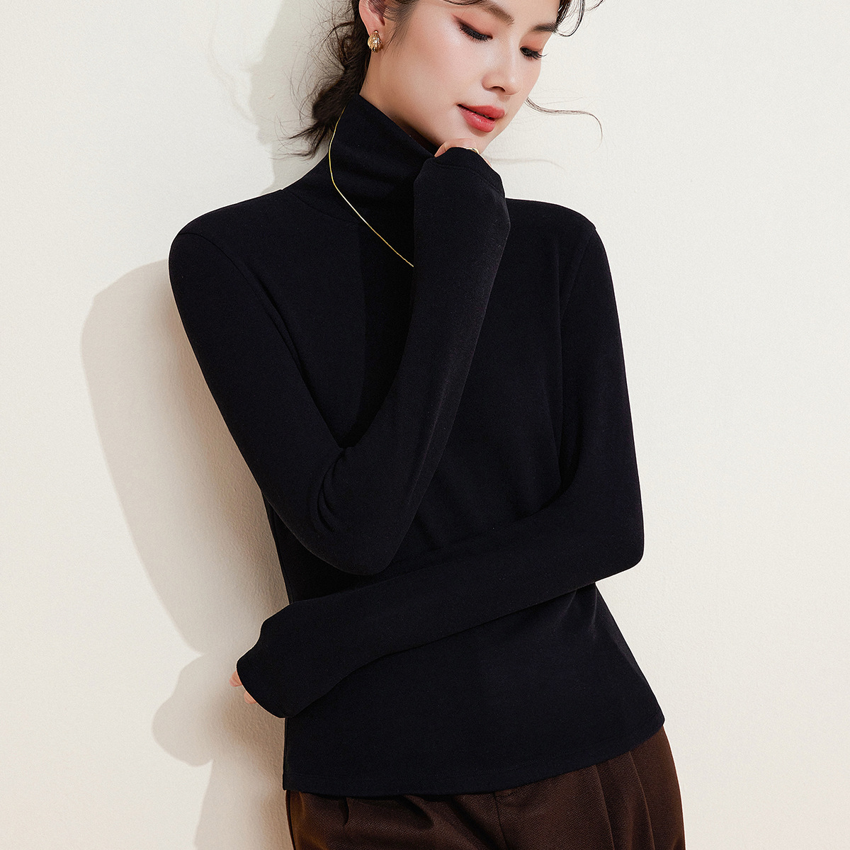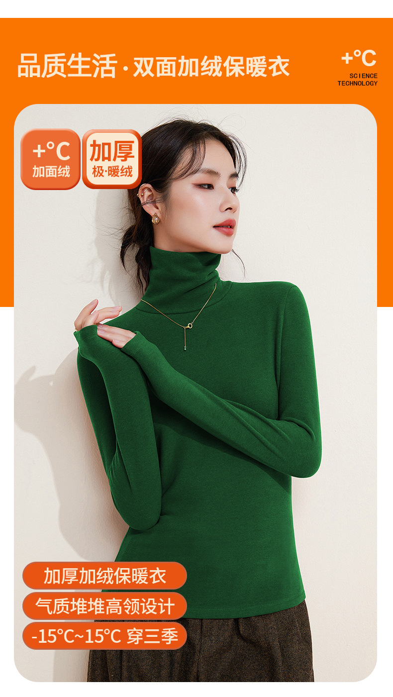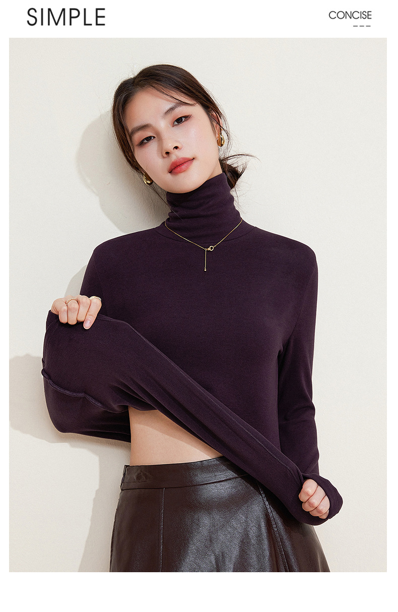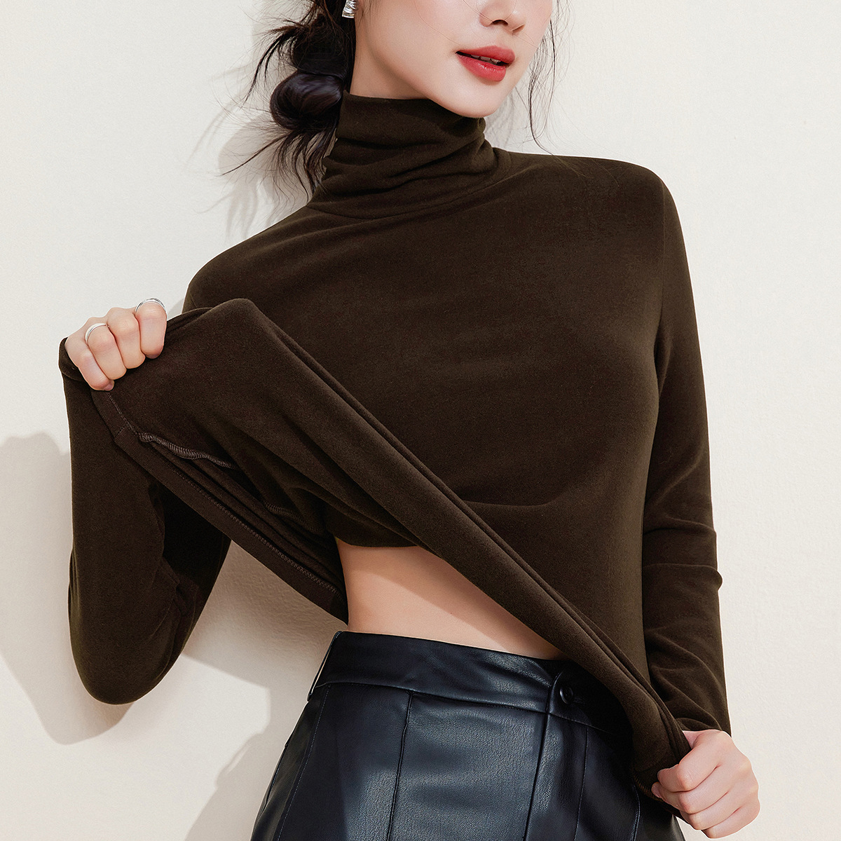 赛尔天丝极暖绒堆堆领打底衫女内搭秋冬新修身保暖加绒上衣秋衣