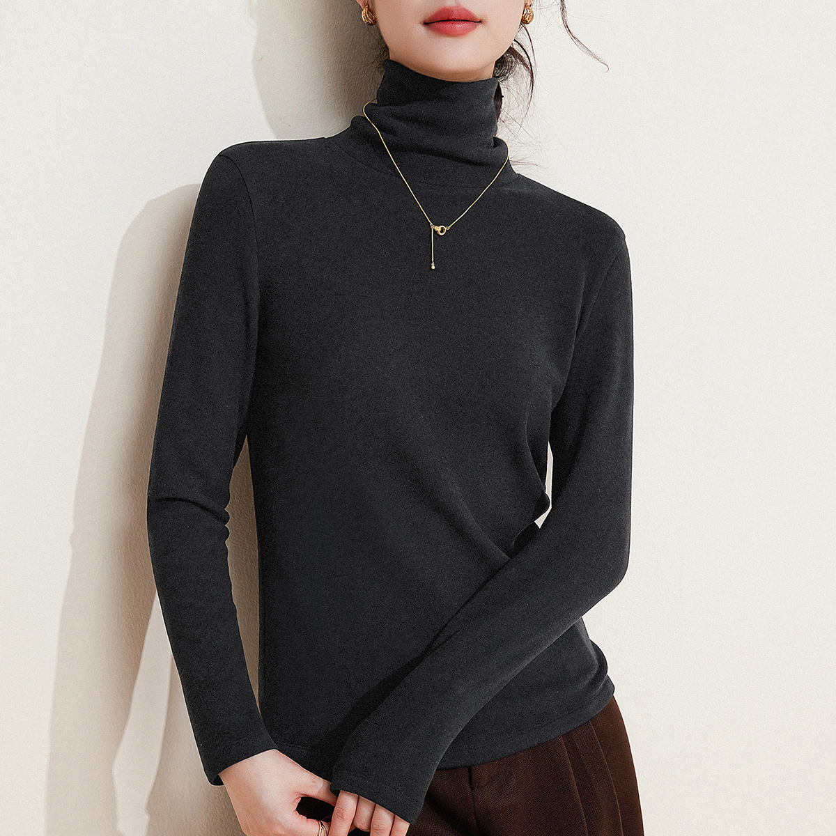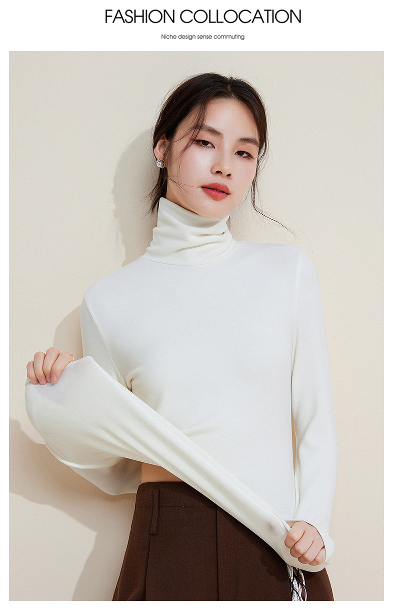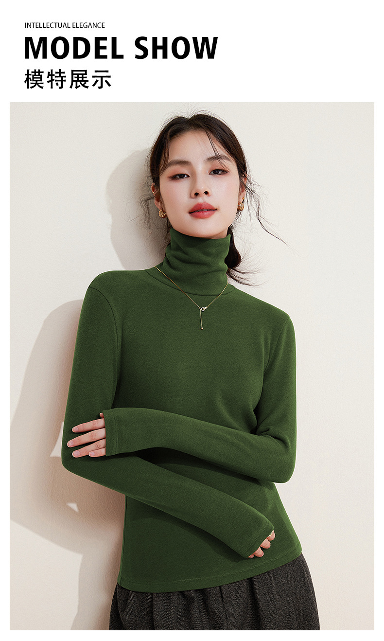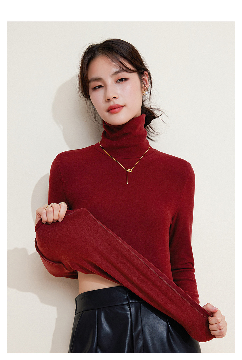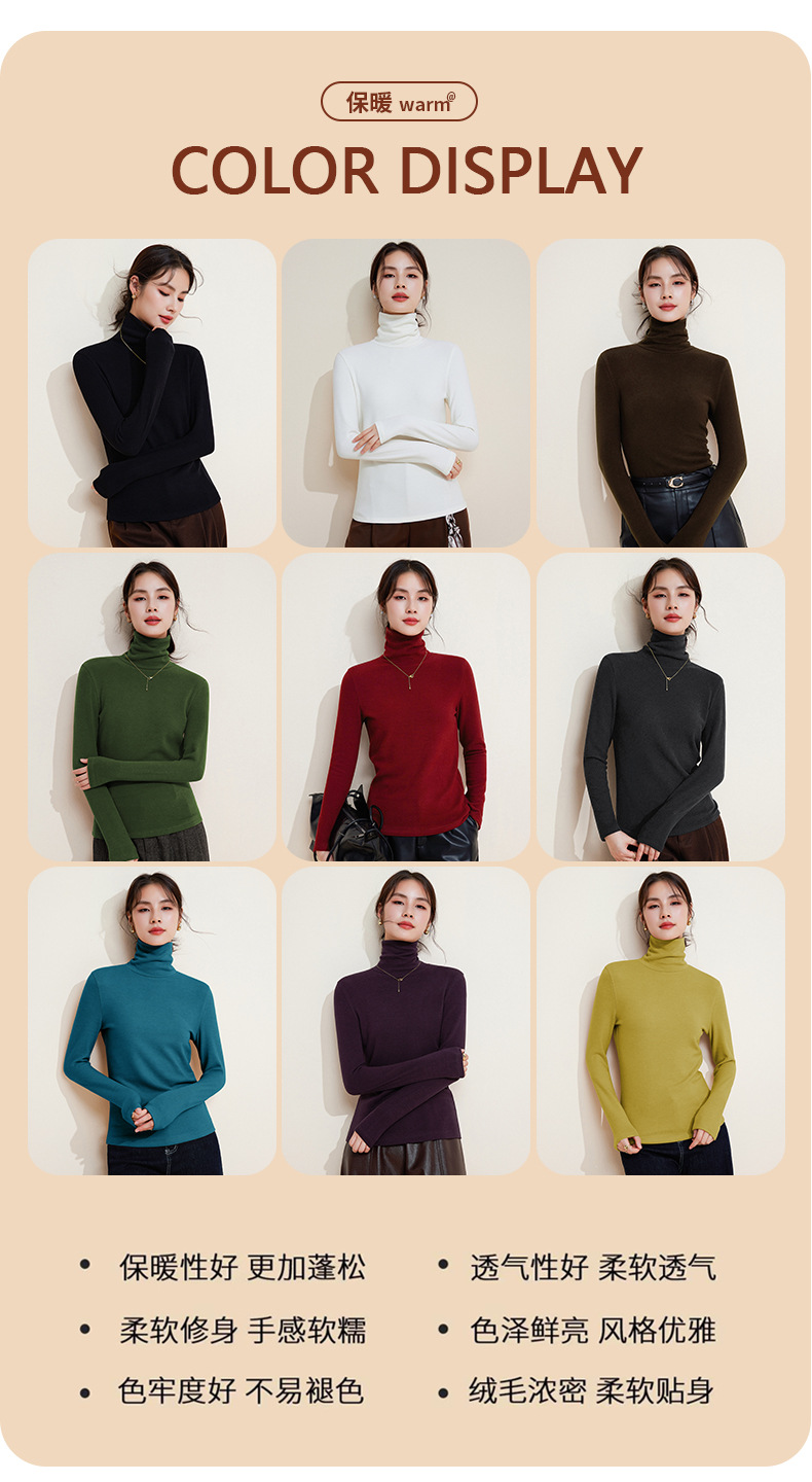 赛尔天丝极暖绒堆堆领打底衫女内搭秋冬新修身保暖加绒上衣秋衣