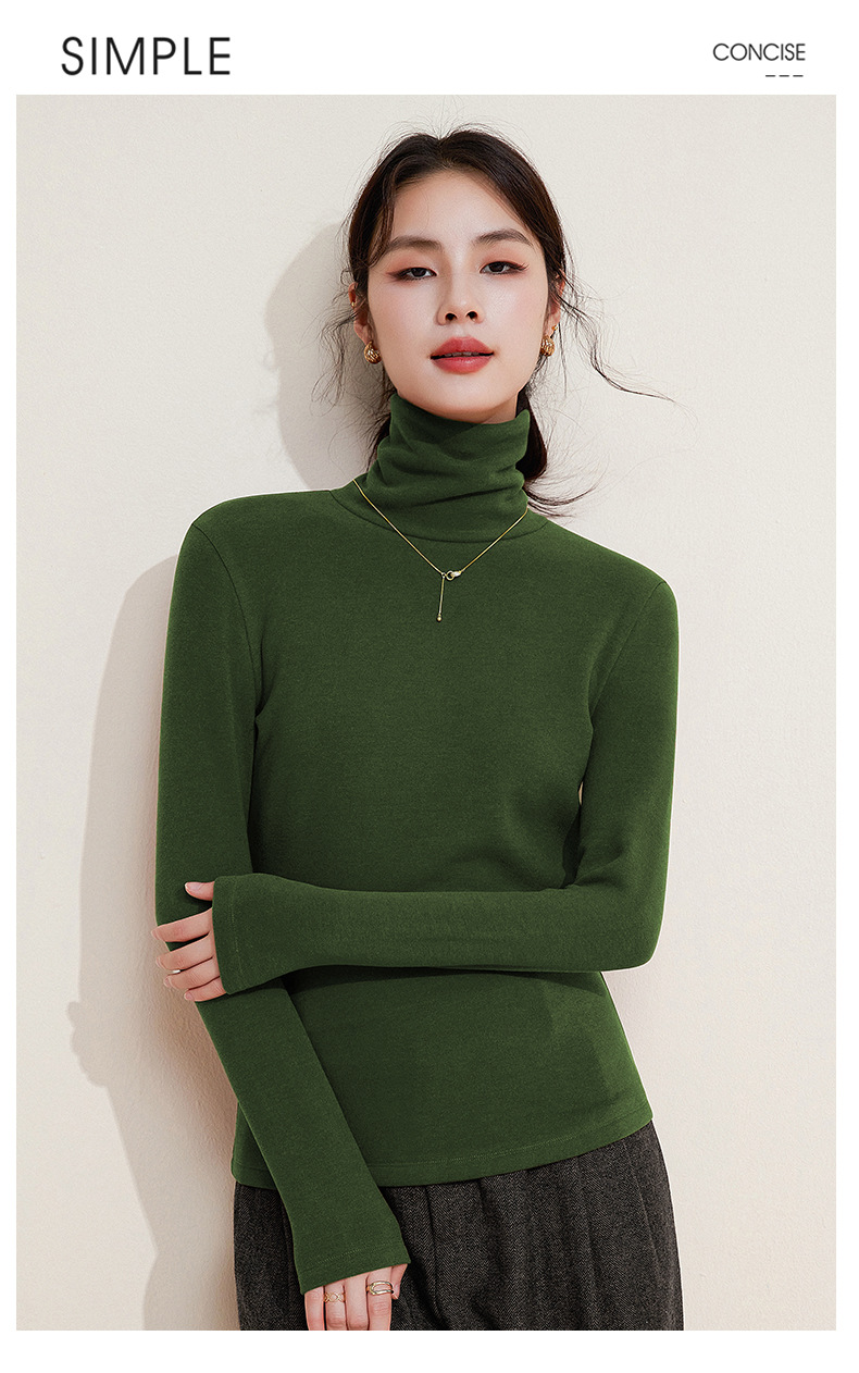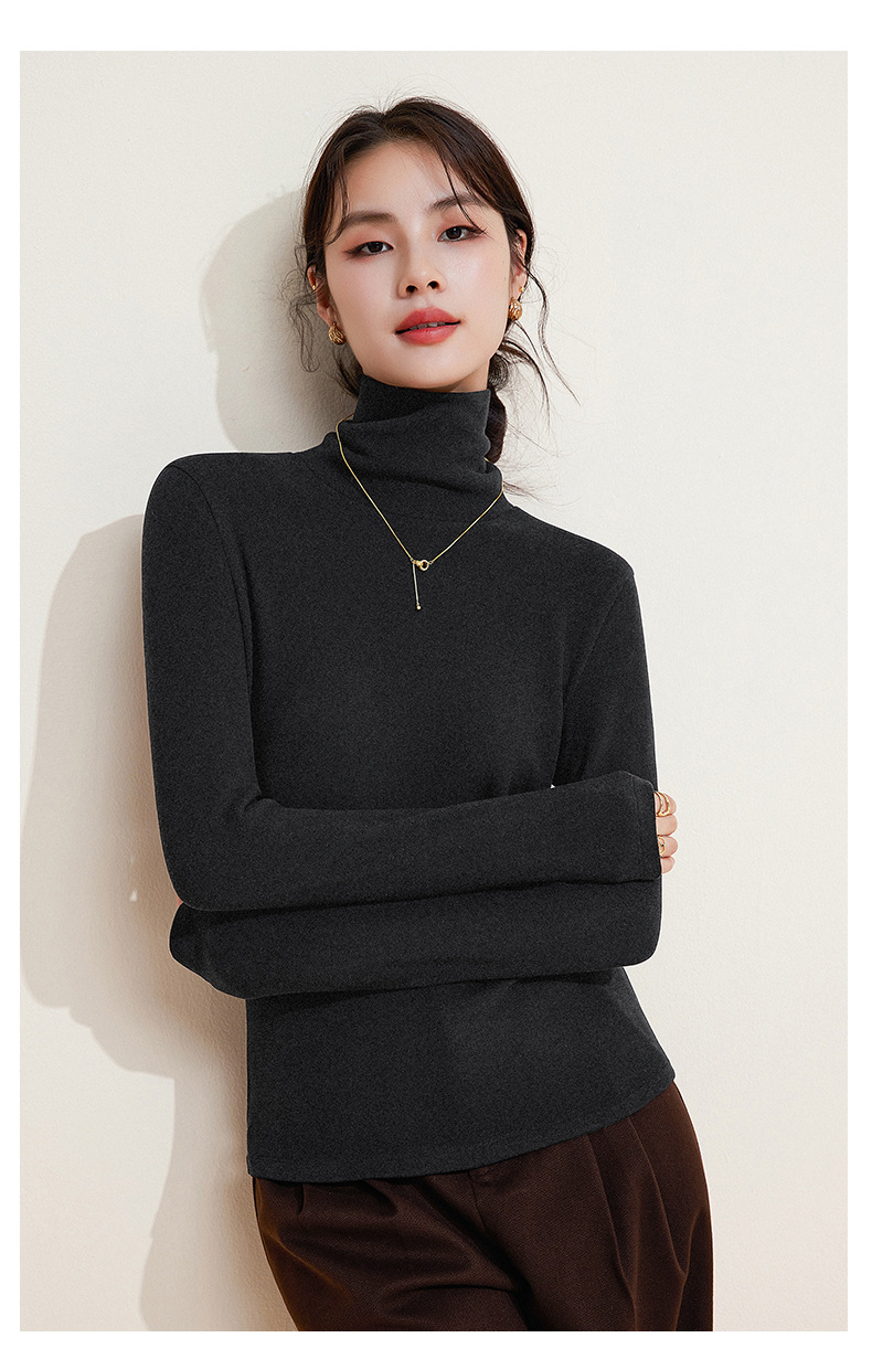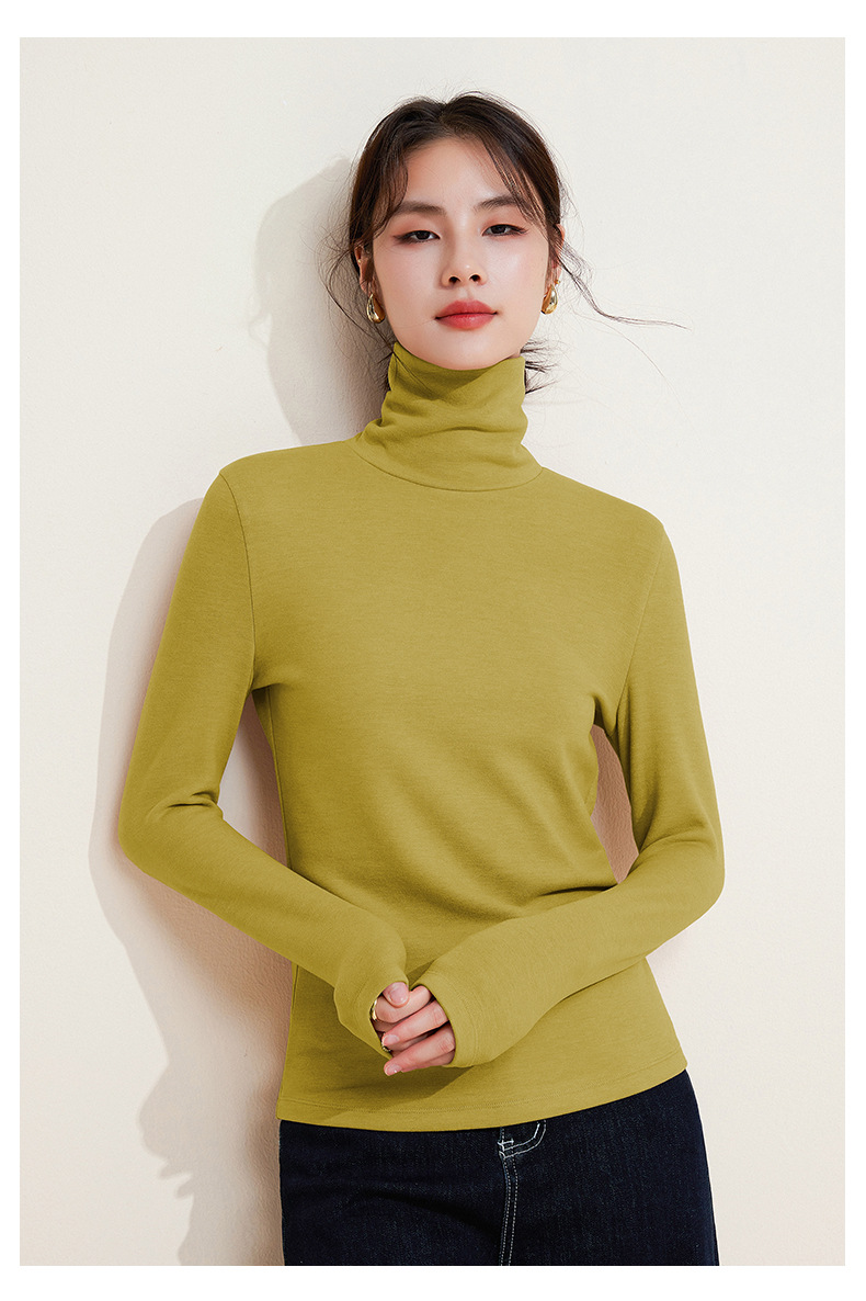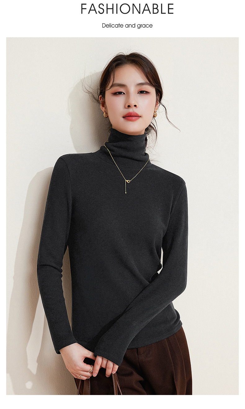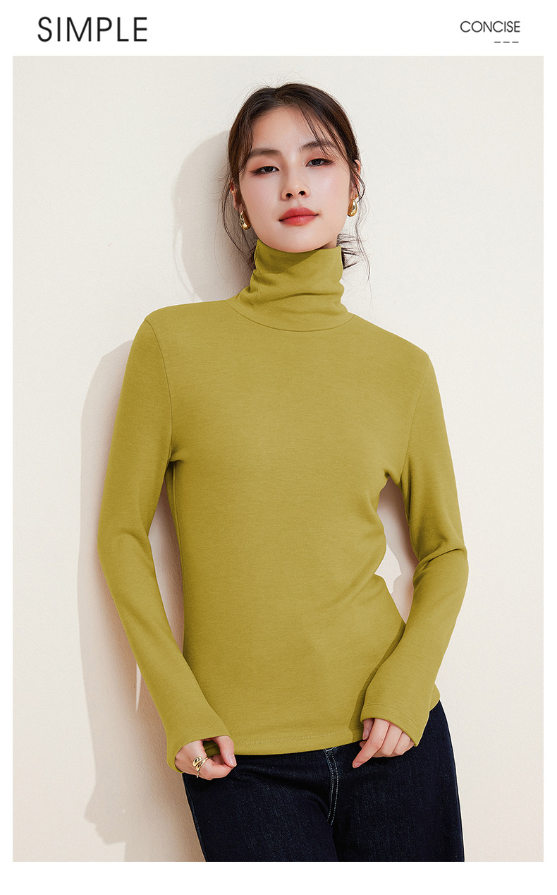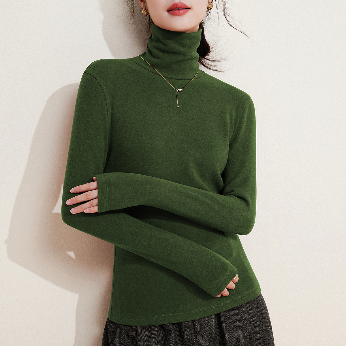 赛尔天丝极暖绒堆堆领打底衫女内搭秋冬新修身保暖加绒上衣秋衣