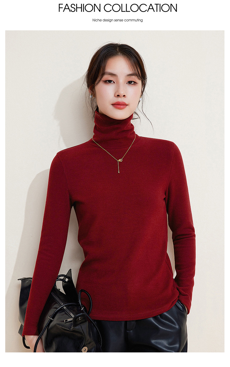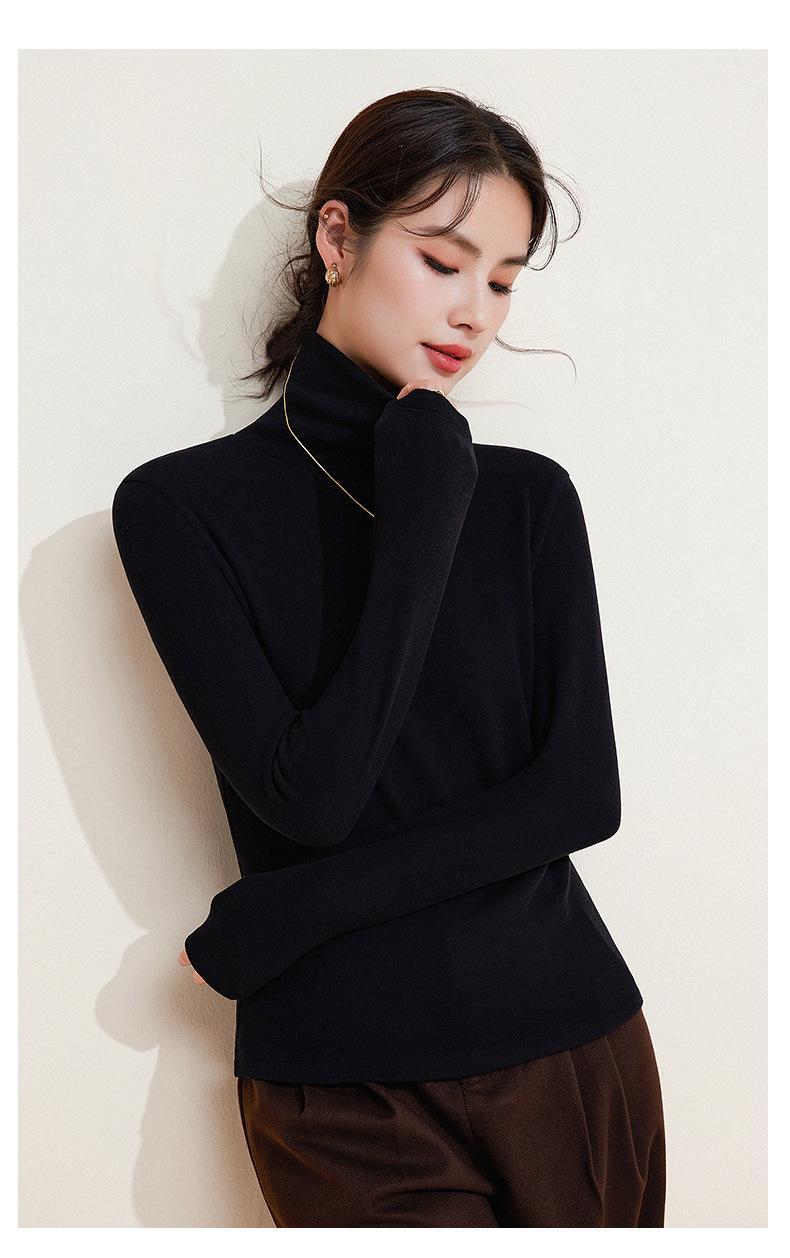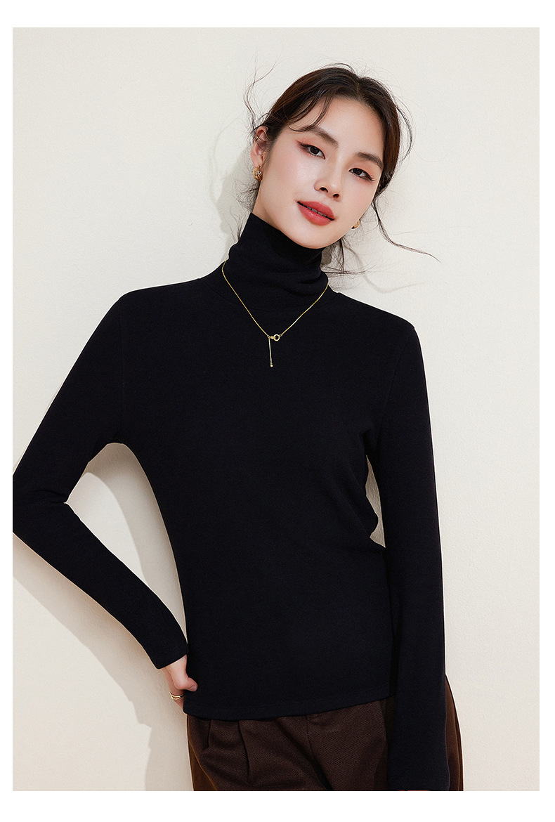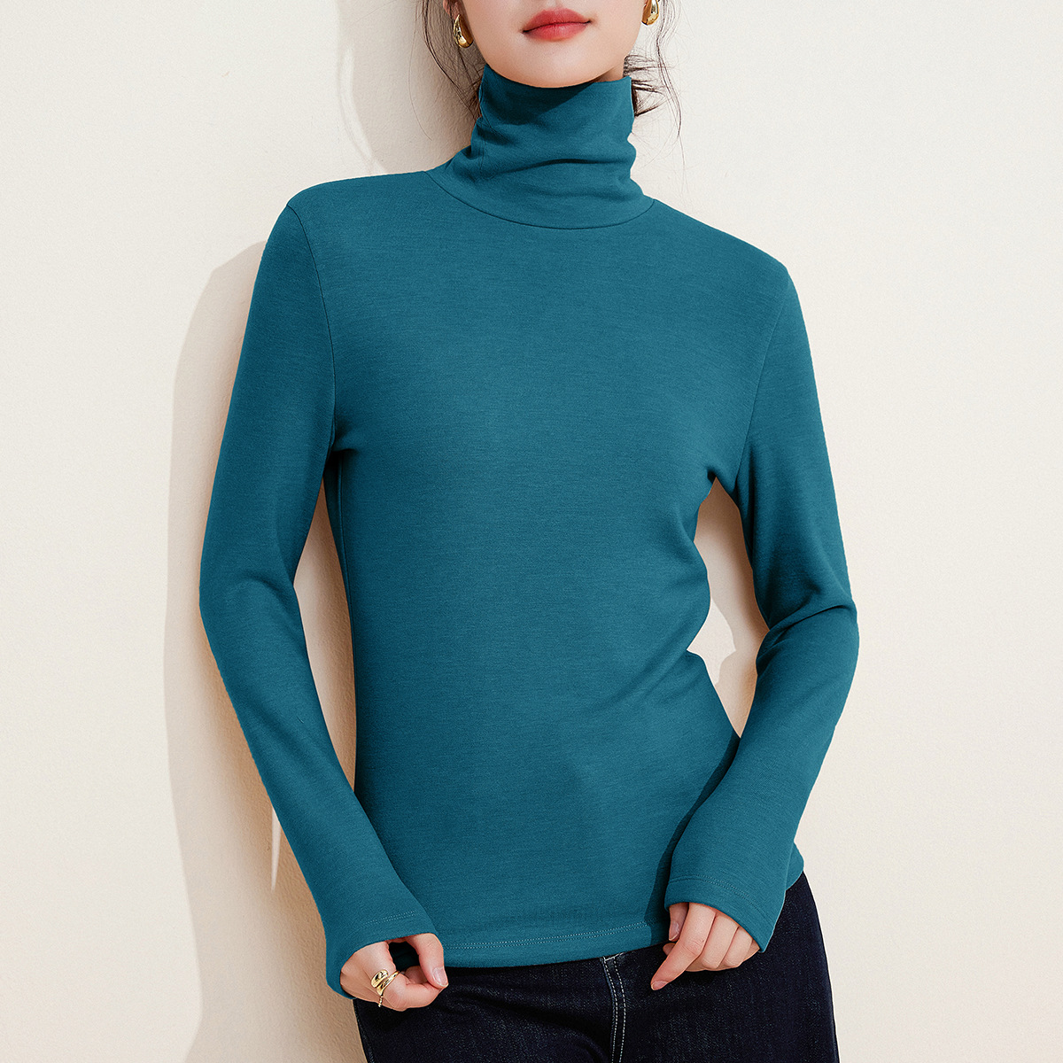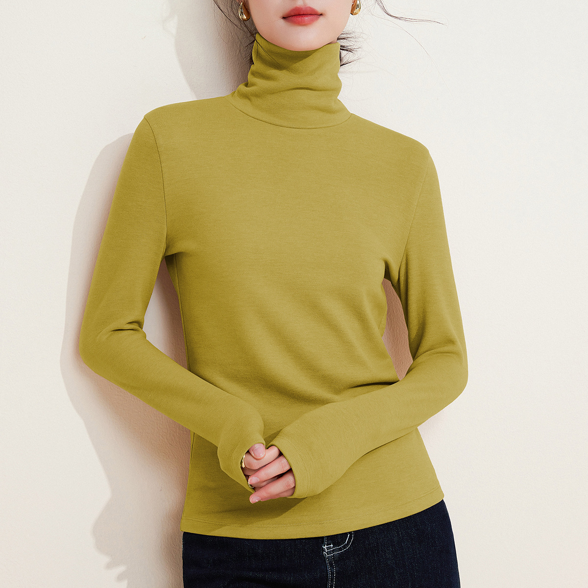 赛尔天丝极暖绒堆堆领打底衫女内搭秋冬新修身保暖加绒上衣秋衣