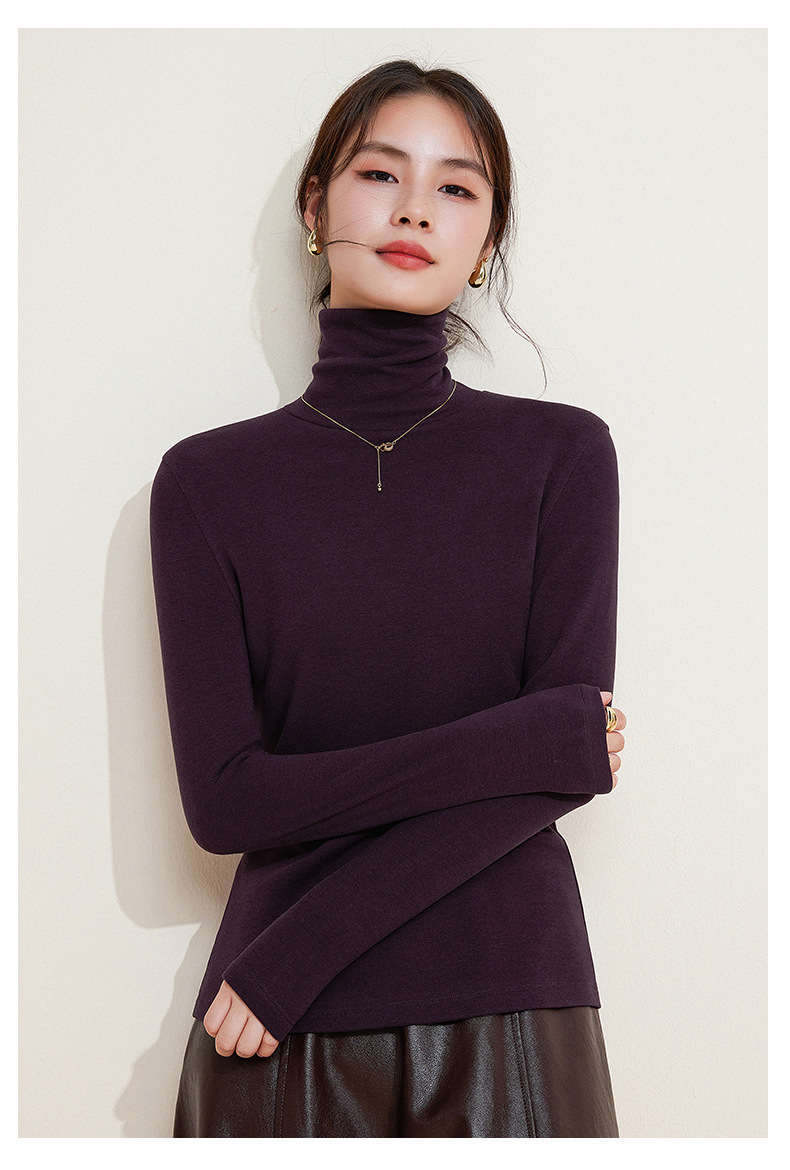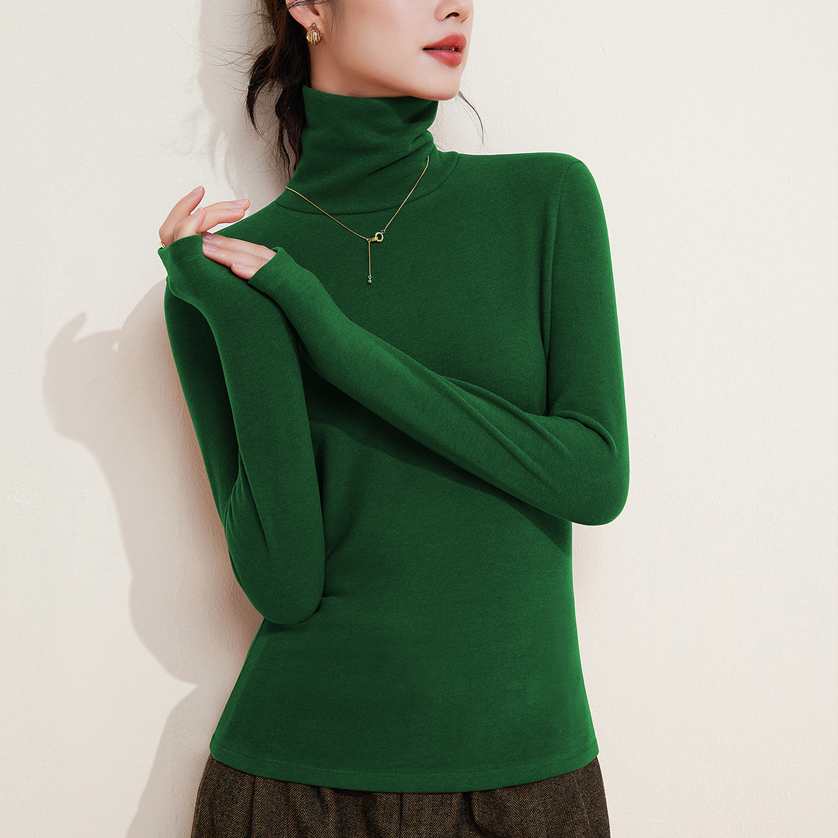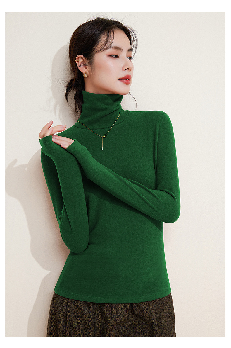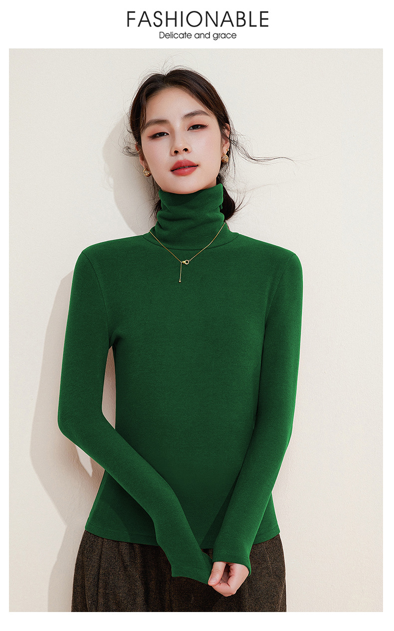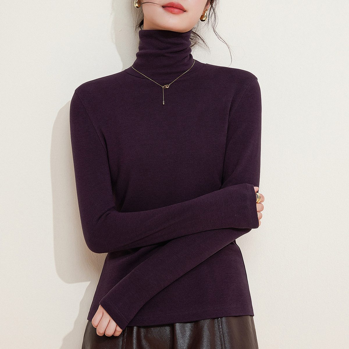 赛尔天丝极暖绒堆堆领打底衫女内搭秋冬新修身保暖加绒上衣秋衣