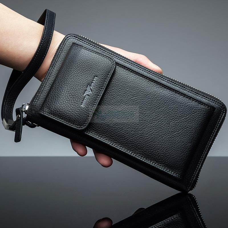 卓梵 阿玛尼手包男真皮大容量手机包头层牛皮青年自动扣皮带手包