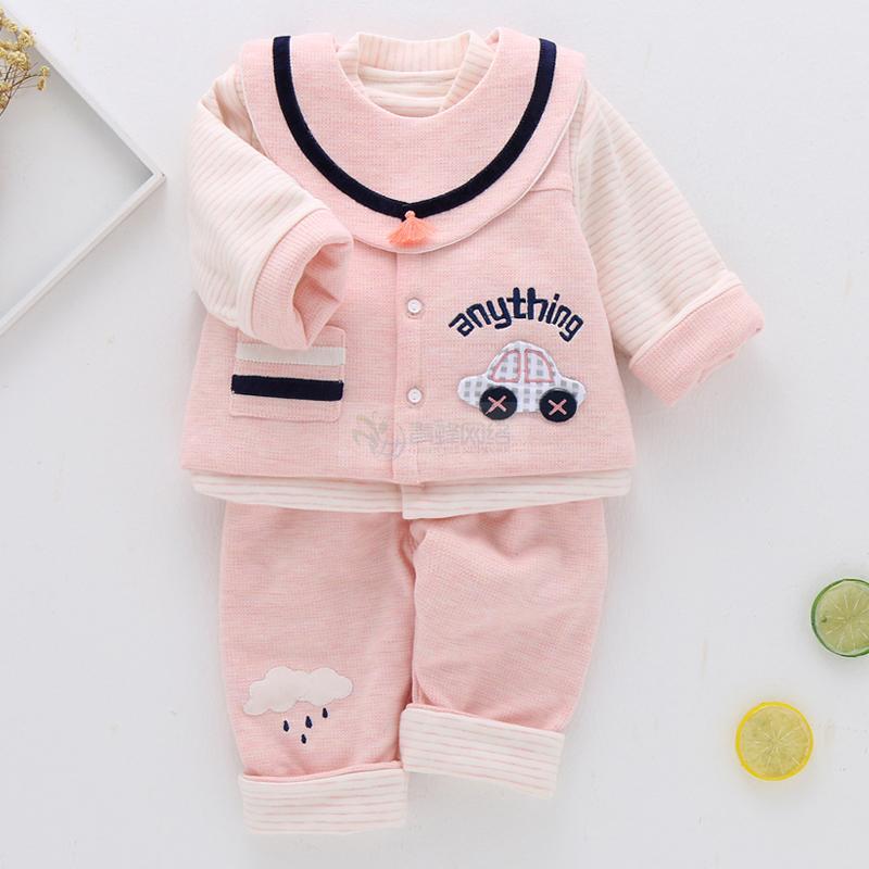 婴儿夹棉棉服套装新生儿纯棉棉袄三件套宝宝01岁春秋季薄棉衣套...